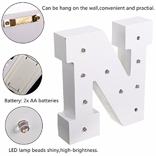 - 独立したまたは壁にかけるに組み込まれたウォールハンガーフック付きであり、配線が使用必要はありません。 スペルアルファベットにこれらの魅力的なLEDライトを持つ任意の名前やフレーズを。