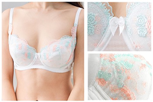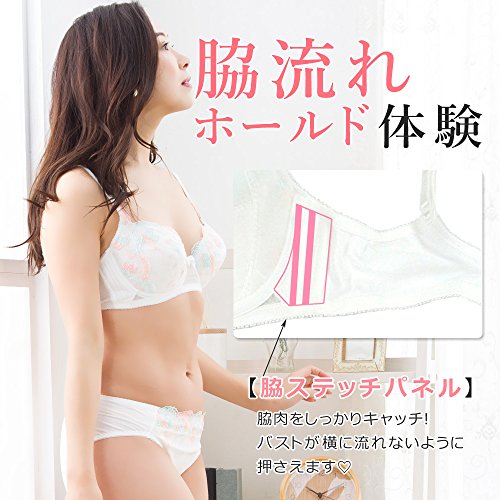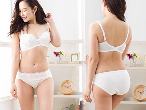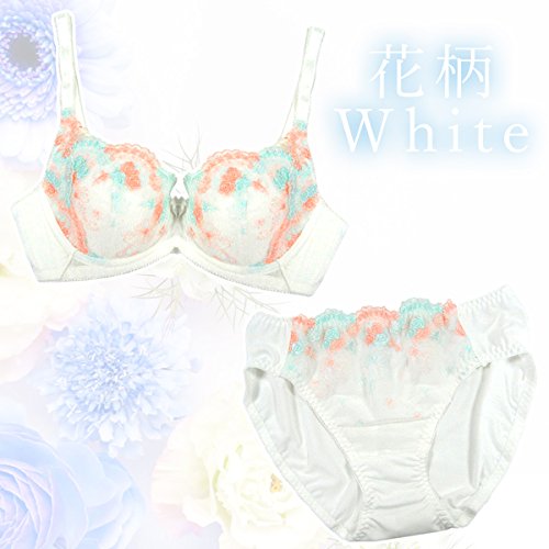 【Laulea Akoakoa】 レディース 下着 セット ブラ ブラジャー ショーツ 花柄 レース 美胸 ランジェリー かわいい 清楚 インナー 女性 (ホワイト, B70)