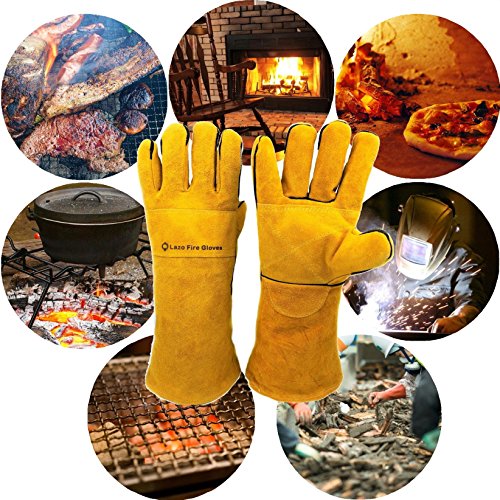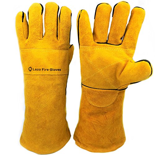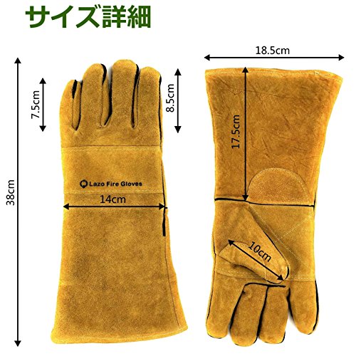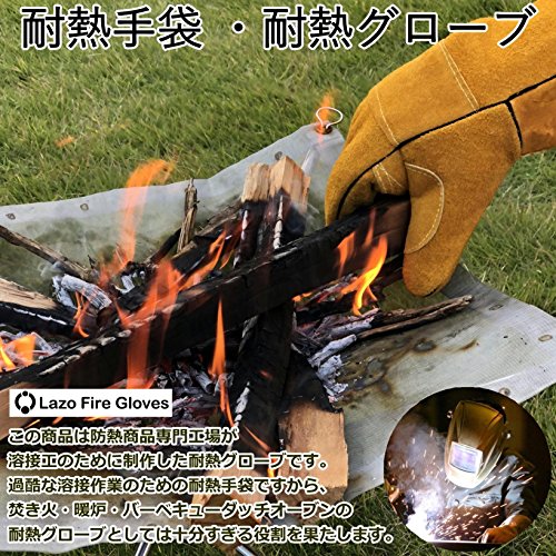 Lazo キャンプ 手袋 アウトドア グローブ 革手袋 軍手 革 耐熱 防熱手袋 暖炉 焚き火 ダッチオーブン 最長:38cm 横幅:平均15cm 重量:420g 材質:牛本革