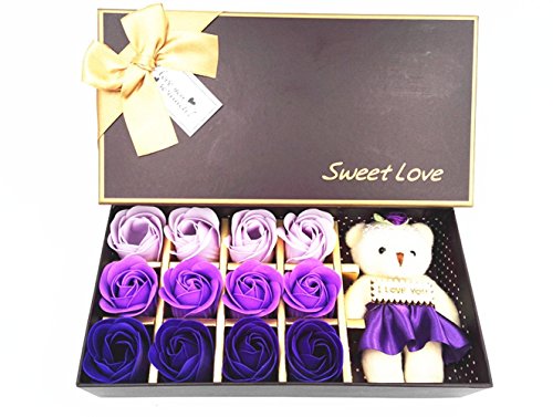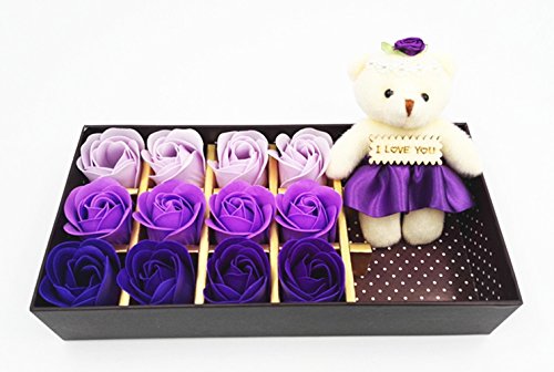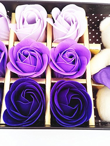 - ★パッケージ:12pcs植物エッセンシャルオイル石鹸は、ギフトボックスの中に花(徐々に紫色)と1pcかわいい人形をバラ. ボックスサイズ:24 * 12 * 5センチメートル(9.4 "* 4.7" * 2 ")、重量:200グラム.