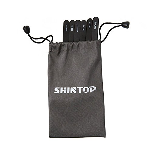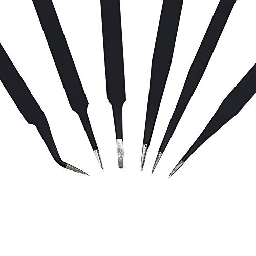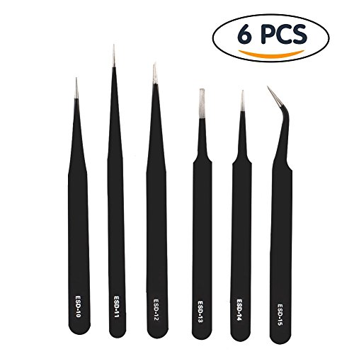 Shintop Anti-Static ESD Tweezers - Pointed Tweezers Anti-Magnetic, Anti-Acid Stainless Steel Tweezers Set for Laboratory Work, Electronics, Jewelry-Making (Pack of 6, Black) [並行輸入品]