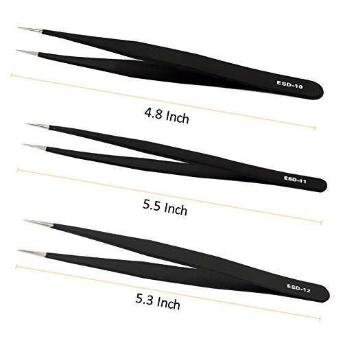 - Tweezers matte black surface finish provides excellent non-slip handling, precision machined for exact alignment and a perfect grip at the tips