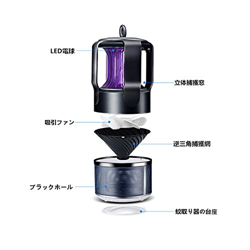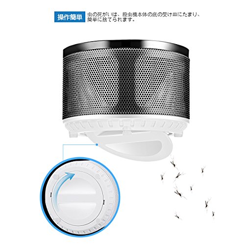 - 【逃げさせず】砂時計形状の逆三角の構造、それに加えて、蚊は吸引ファンの風により捕獲網まで封じ込められ、再び上部に逃れることはできません !そして、蚊の風化した残骸を取り除くときは、殺虫機本体の底の受け皿を開けて、簡単に捨てられます!