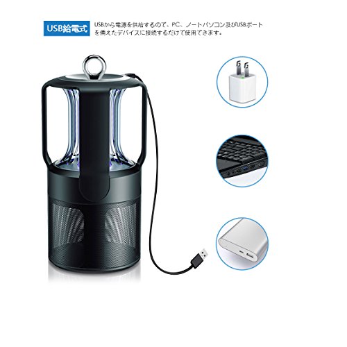 Lecxci 蚊取り器 UV光源主動吸引式捕虫器 虫退治 誘虫灯【一年間安心保証】 LED搭載 静音 省エネ 輻射無し USB対応 環境に優しい 屋内 虫取り器 (ブラック)
