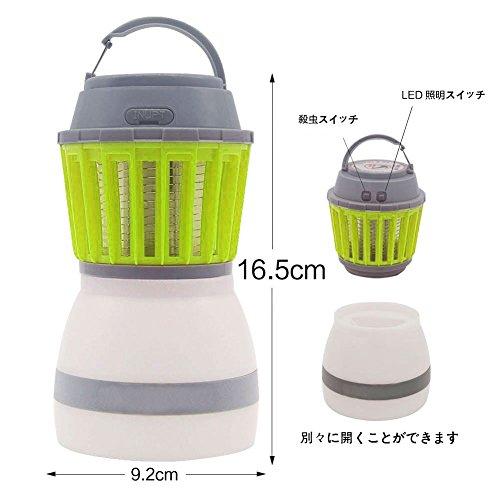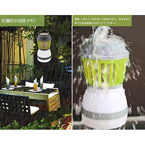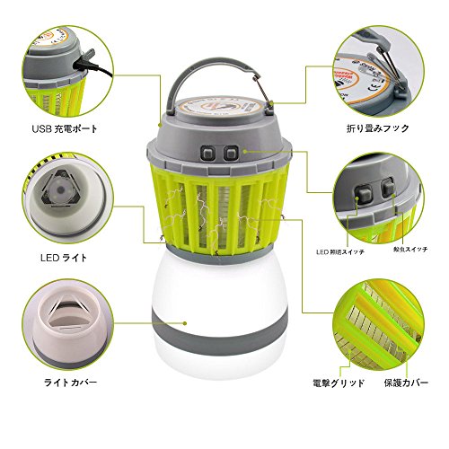 Lecxci 蚊取り器 UV光源誘引式 電撃殺虫器 虫退治 誘虫灯 蚊取りと照明両用 LED搭載 静音 省エネ 輻射無し 2200mAhの充電可のバッテリー IP67防塵防水 (緑)
