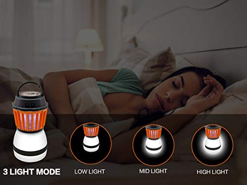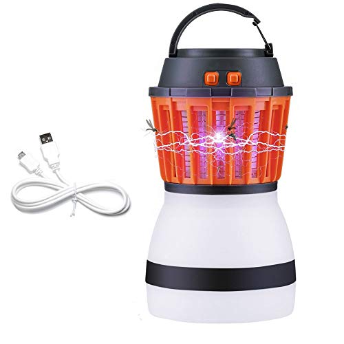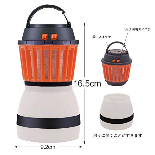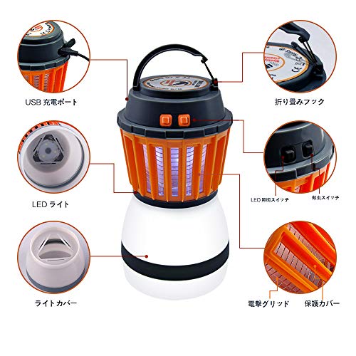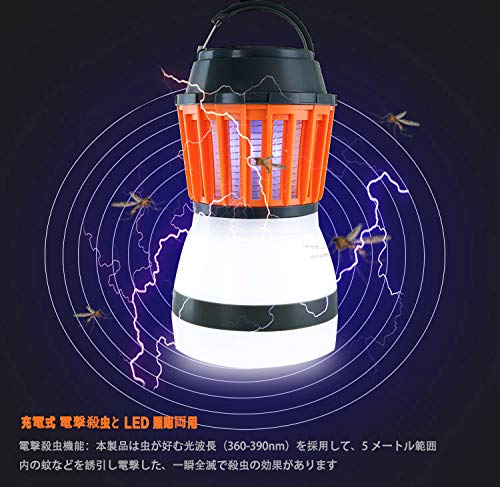 Lecxci 蚊取り器 UV光源誘引式 電撃殺虫器 虫退治 誘虫灯 蚊取りと照明両用 LED搭載 静音 省エネ 輻射無し 2200mAhの充電可のバッテリー IP67防塵防水 (ブラック)