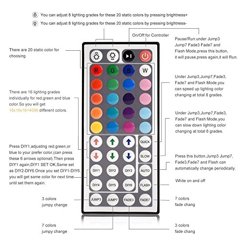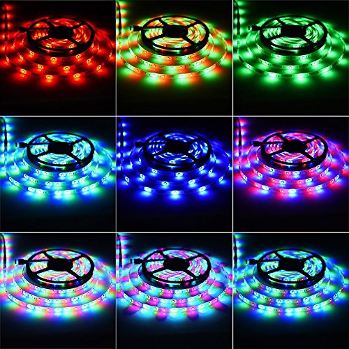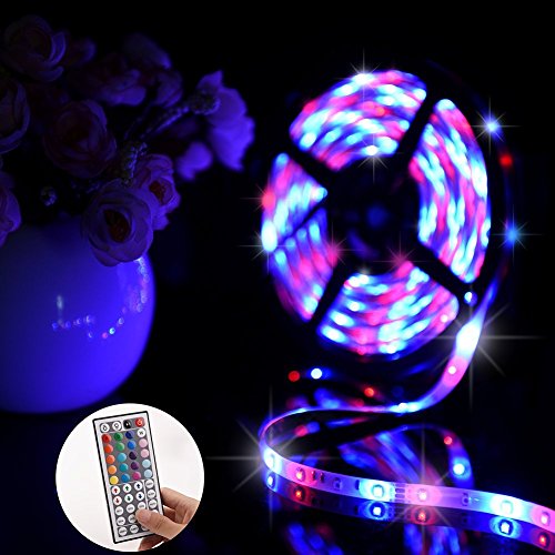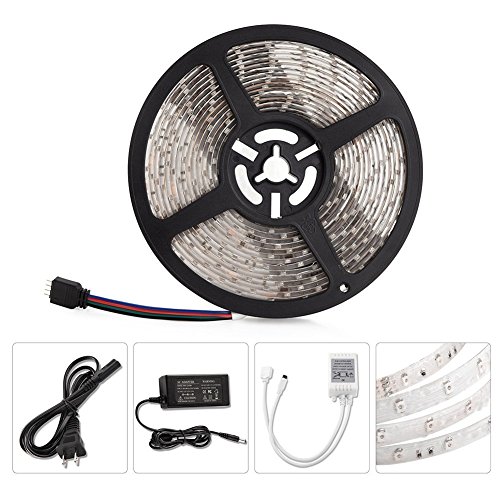 Ledgle 16.4ft LED Light Strip, LED Strip Lights, 300LEDs SMD3528 LED Strip Lighting, RGB Color Changing, Waterproof, 44Key Remote Controller, 12V 2A Power Supply for Holiday,Party,Indoor Decoration [並行輸入品]