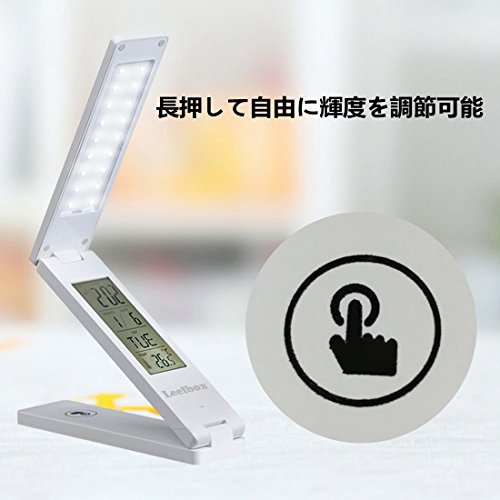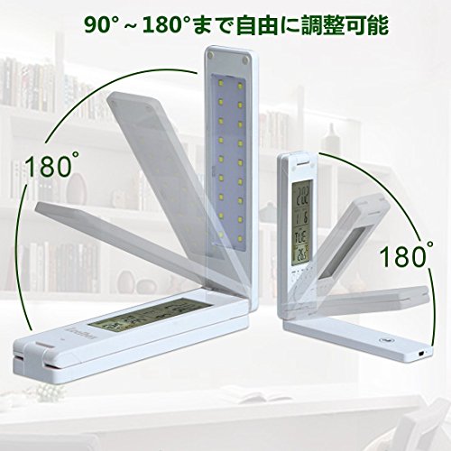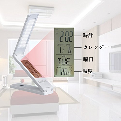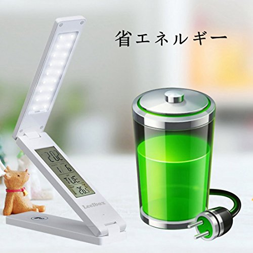 Leelbox LEDライト デスクライト 卓上スタンド 無段階調光 USB充電 時計・カレンダー・温度表示 18LED 折りたたみLEDライト ホワイト (FX-010B LED)