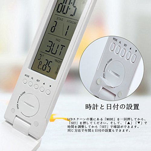 - ◆【液晶ディスプレイ】液晶ディスプレイを搭載したデスクライトはボタン電池式です。時計・アラーム・カレンダー・誕生日リマインダー・温度計を設定することができまで枕元に置いて目覚まし時計としてもお使いいただけます。