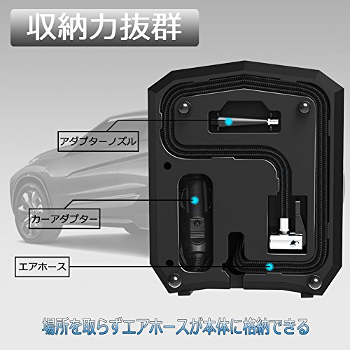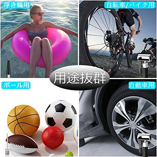 - 【多用途】車のタイヤだけでなく、ボール用と浮き輪用のアダプターノイズが付属されているので、自転車や、バイク、ボール、プール浮き輪などにも空気をいれることができます。多彩に活躍してくれます。