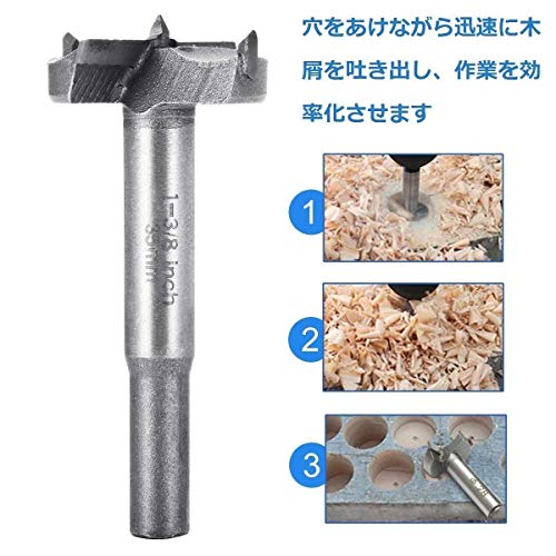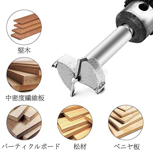 - 『特徴』ステンレススチールやチタンコーティングを使われ、使用寿命が長くて、耐久性と実用性は優れます。木材の止まり穴加工・貫通穴・斜め穴切りなどに便利です。切削抵抗も少なく、切れ味抜群です。回転速度:800RPM。