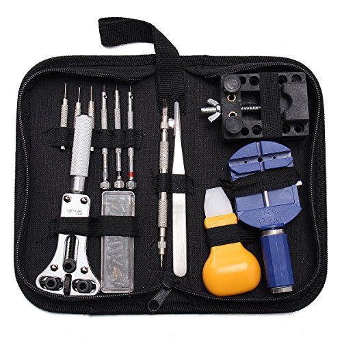 小さな、便利な、使いやすいです。 時計を開いて、比較的容易ですし、ほぼすべての時計バンドを除去することができるようになります。 時計の背中を開く、時計の電池交換、時計ガスケットを変え、時計バンドを調整し、多くの機能を含まれています。 多くのツールは時計の好きな人が最もありふれた調整ツールです。 すべてツールを保護するために、実用的なナイロン袋に入れています。 専用のケースが付いているので持ち運びにも便利です。 高品質な時計の修理キット専門時計修理 。 抗磁気ピンセットを使用して、あなたは今、電池自身を変更することができます。 時計屋さんに頼むしかなかった、ベルトサイズ調整や電池交換も このセットがあれば自分もできます。 仕様: