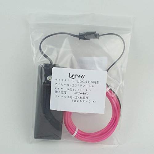 Lerway 有機ELワイヤーネオン 3m トランスフォーマー付きELワイヤー パーティー LED ライト自転車 ライト (ピンク, 3m)