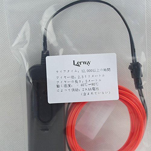 Lerway 有機ELワイヤーネオン 5m トランスフォーマー付きELワイヤー パーティー LED ライト (赤)