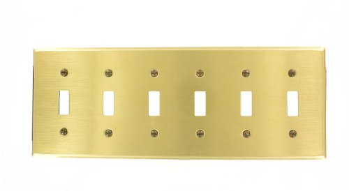 Leviton 81036 6-gang Toggleデバイススイッチウォールプレート、標準サイズ、デバイスマウント、真鍮