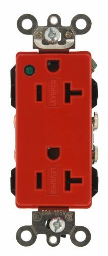Leviton 16362-PLR 20-Amp, 125 Volt, Decora Plus Duplex Receptacle, Straight Blade, Hospital Grade, Self Grounding, Power Indication, Red by Leviton [並行輸入品]
