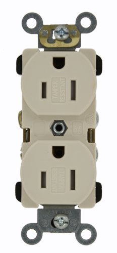 Leviton TBR15-T 15 Amp, 125 Volt, Narrow Body Duplex Receptacle, Straight Blade, Tamper Resistant, Commercial Grade, Self Grounding, Light Almond by Leviton [並行輸入品]