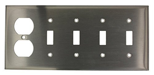 Leviton S48-N 5-Gang 4-Toggle, 1-Duplex Device Combination Wallplate, Device Mount, Stainless Steel