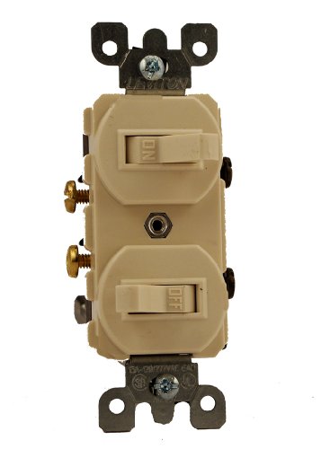Leviton 5224-2T 15 Amp, 120/277 Volt, Duplex Style Single-Pole / Single-Pole AC Combination Switch, Grounding, Light Almond