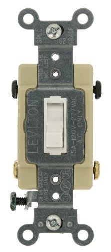 Leviton 54504-2W 15-Amp, 120/277-Volt, Toggle Framed 4-Way AC Quiet Switch, Commercial Grade, Grounding, White