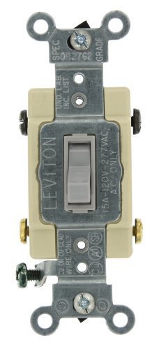Leviton 54504-2GY 15-Amp, 120/277-Volt, Toggle Framed 4-Way AC Quiet Switch, Commercial Grade, Grounding, Gray