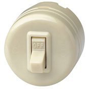 Leviton switch Framed toggle for a neat finished appearance. Commercial grade, single pole 10A 125V/5A 250V1210 Slotted phenolic or urea cover, snaps in place Back wired terminal screws accept up to #12 copper conductors Mounting holes are 1-7/16" apart and accept, #4 screws Includes wood screw for surface mounting 1 15/16th" diameter