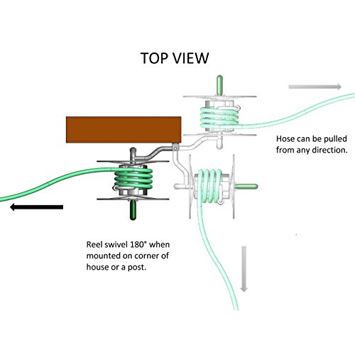 The Mighty Reel is a low profile, high capacity, durable all steel hose reel that will keep your yard uncluttered and add years to the life of your hoses. Unlike other wall mounted hose reels that are fixed in a single position, the Mighty Reel swivels to both parallel and perpendicular positions. Improved Mount design allows for additional “T” Post mounting capability. The generous 75’ capacity easily accommodates most standard lengths of 5/8” hose.