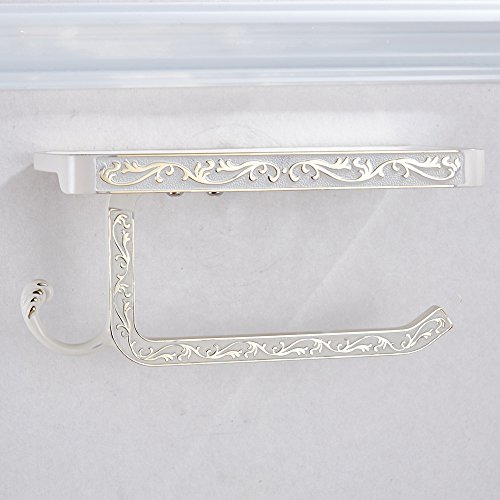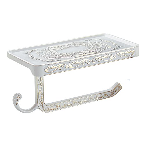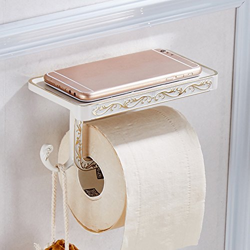 ライデンTMアンティーク彫刻亜鉛合金トイレロール紙ラックwiht電話シェルフウォールマウントバスルームペーパーホルダーとフック ホワイト Ly-GJ-160710-W
