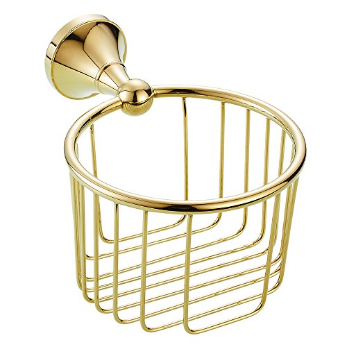 ライデンTMソリッド真鍮バスルーム洗面所トイレティッシュペーパーホルダーティッシュペーパースタンドティッシュペーパーストレージTissue PaperシェルフTissueペーパーバスケットティッシュ紙オーガナイザーTissueペーパーラック、ゴールド仕上げ