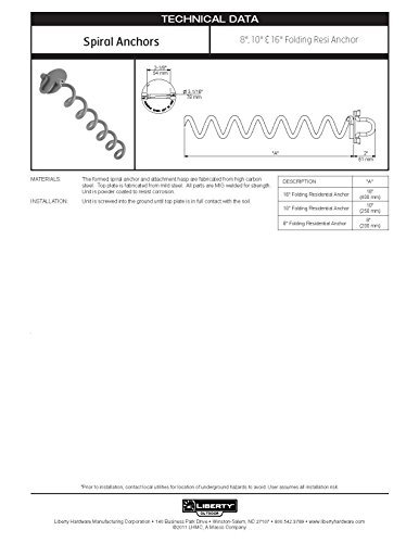 Make it quick, easy, and secure with the Liberty Outdoor Vortex Residential Ground Anchors. The spiral design makes anchor relocation and removal easy. The anchor is made of cold, rolled steel for durability and strength. Whether you need to secure the kids play set or swing set, hold down that outdoor furniture that keeps blowing away, or keep the cover secured over that precious boat or RV this anchor is your answer.