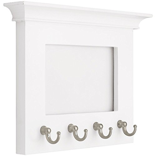 Limited lifetime warranty. Organization with style has never been so easy. But now you can keep all of the family's keys in one location with this unique picture frame key rail with 4 hooks. This multifunctional picture frame can fit a 4 in. X 6 in. Photo. The classic design is ideal for use from the entryway to the bedroom, with a variety of items including keys, necklaces, and jewelry. Embrace the Liberty of organization!