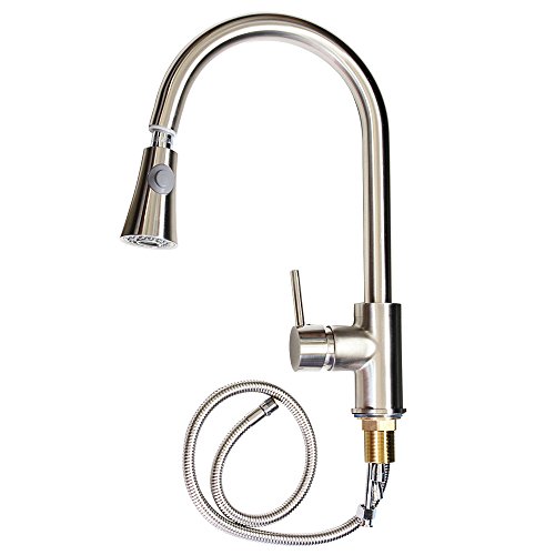 lifbetterシングルハンドルプルダウンSprayerメタルキッチン蛇口with 2水コンセントby切り替えモードのボタン