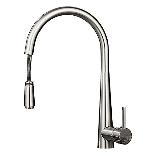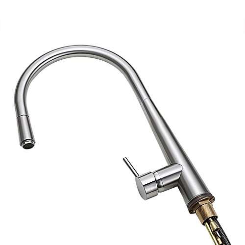 Lifbetter ワンホール キッチン 用 混合水栓 金具 蛇口 水道 エコシングル 水栓 ハンドシャワー 付き 洗面台 (ヘアライン)