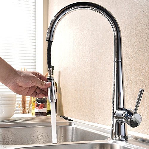 - ホース引き出し可能:ホースが伸びるので、シンクのすみずみまできれいに洗い流せ、また、大きな花瓶など背の高い容器へ水を汲みたいときにも便利。