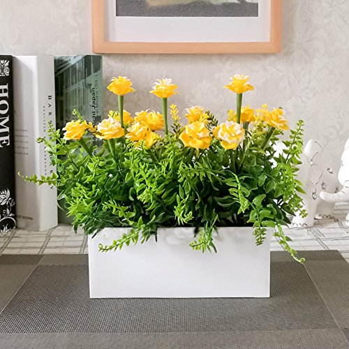 LifeStar 造花 フェイクグリーン 人工観葉植物 お世話のいらない 癒し 観葉植物 インテリア 人工 トピアリーボール 鉢植え 装飾 本物みたい プレゼント 贈り物 多色 イエロー