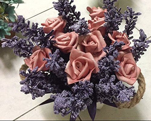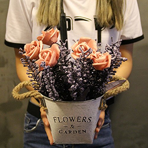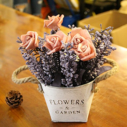 LifeStar 造花 人工観葉植物 お世話のいらない 癒し 観葉植物 インテリア 人工 鉢植え 装飾 本物みたい プレゼント 贈り物 結婚式 パーティー 引越し祝いに 多色バラ混ぜ合わせの造花 ピンクパープル系ローズ