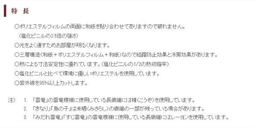 - PF-202・雲竜の販売となります。お間違いのないようご注意ください。 和紙本来の特性である吸放湿性、吸着性、断熱性を備えながら、破れない強度とでんぷん糊で貼れる特長を併せ持つ「人と建具にやさしい」素材。彩りのカラーで住まいをおしゃれに演出できます。 サイズ:950×2150mm(1本あたり) 個装サイズ:95×10×20cm 重量:個装重量:600g 素材・材質:パルプ・レーヨン・蛍光剤・ポリエステルフィルム セット内容 同種2本セット 製造国:日本