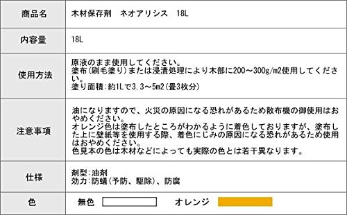 ガーデニング用品 作業用品 オス スメ 木材保存剤 ネオアリシス 18L オレンジ