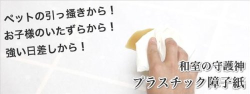 アイロンで貼り付けられる障子です。プラスチック製のため水拭きができ、ペットの衝撃や引っかき、お子様のいたずらにも強いです。
