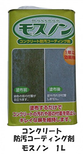 - 「モスノン」は、コンクリートの塀や自然石塀等に塗布することで、苔汚れや雨による窓枠下の黒ずみ汚れやサビ汚れ等の付着を防止するコーティング剤です。 塗布面は見た目がほとんど変わらず、自然な仕上がりになります 製造国:日本 成分:シリコーン、変性オイル、剥離剤 内容量:1L 仕様:塗布可能範囲:約16.5平米(5坪)無色透明液体消防法:第四類 第一石油類非水溶性液体