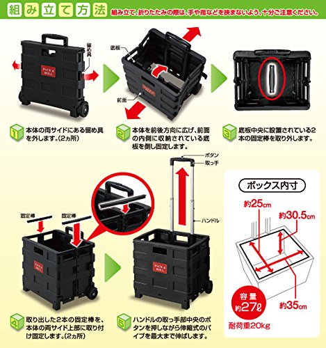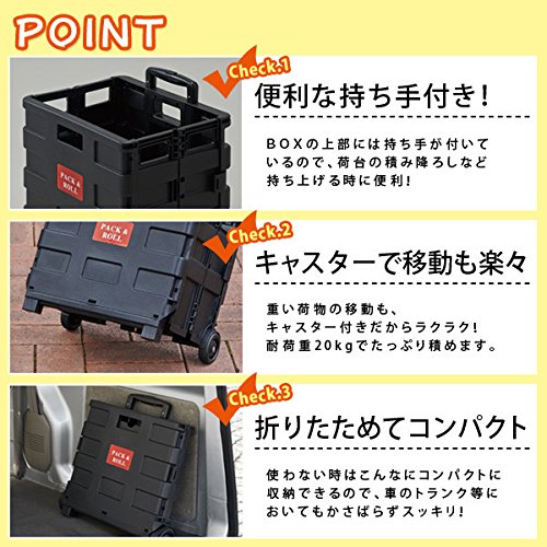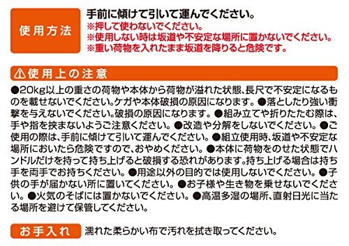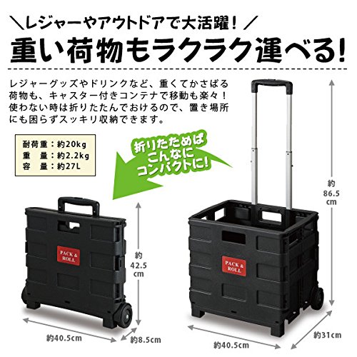 - ショッピングのお伴に最適。重い荷物もラクラク運べる!スポーツ・レジャー、アウトドア、キャンプなどでも大活躍。使用後は折りたたんでコンパクトに収納できます。サイズ・容量■商品サイズ(約)W40.5×H42.5×D8.5cm(折りたたみ時)(約)W40.5×H42.5~86.5×D31cm(組み立て時)■ボックス内寸:(約)W35×H30.5×D25cm■パッケージサイズ:約40.5×8.5×42.5cm ■素材・成分本体/ポリプロピレン・ポリエチレン、ハンドル/アルミニウム、取手/ABS樹脂、キャスター/ABS樹脂、車輪/SBR(スチレンブタジエンゴム)■パッケージ:個別箱