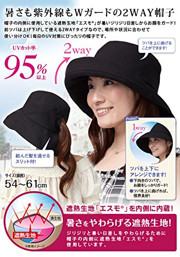 - カラー:ブラック 単品販売になります。※画像は使用例の説明の為、本商品のカラーと異なる場合がございます。内側に内蔵した遮熱生地「エスモ」が、暑い日差しをガード!結んだ髪を通せるスリット付です。あご紐付だから風で飛ばされにくいです。サイズ・容量 ■適応サイズ:頭囲:54~61cm■パッケージサイズ:約W19.5×L32×H8(ヘッダー5cm含む)■素材・成分:ポリエステル100%