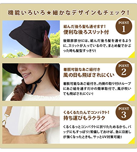 ハット ぼうし コンパクトに折りたため、持ち運び便利 使いやすい 遮熱&UVカットつば広帽子 ブラック