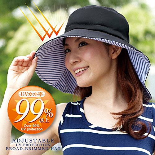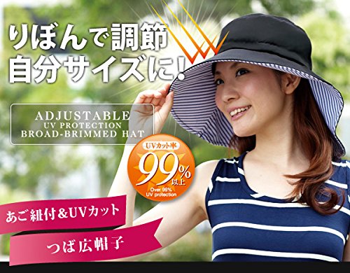 UVカット帽子 UVカット率99%以上 人気の りぼんde調節UVカットつば広帽子