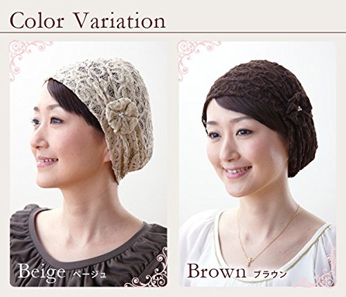 コサージュ付き ハット 急な外出や、来客時に 便利 レースのヘアキャップ ブラウン
