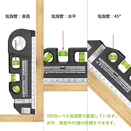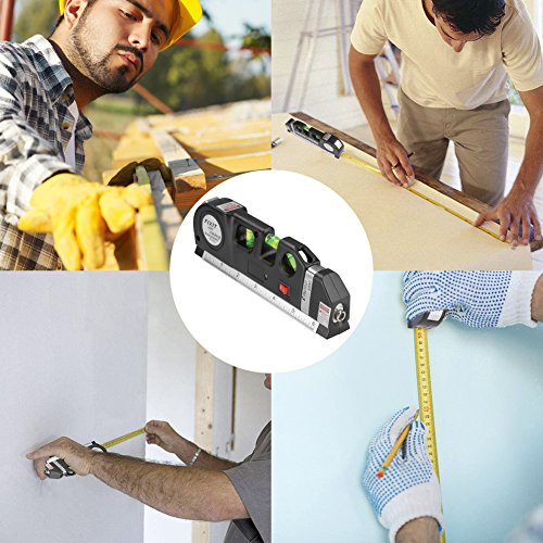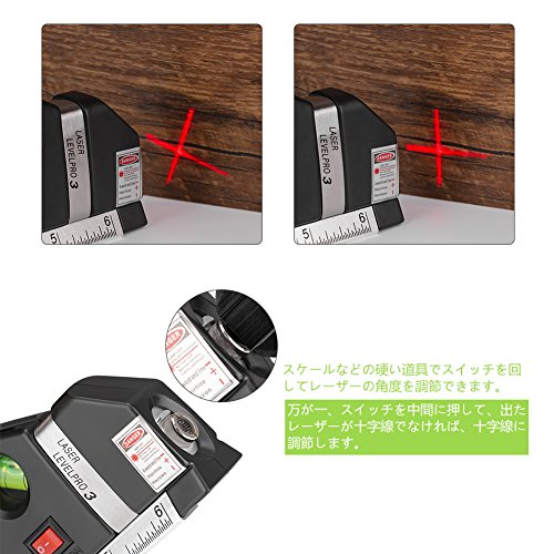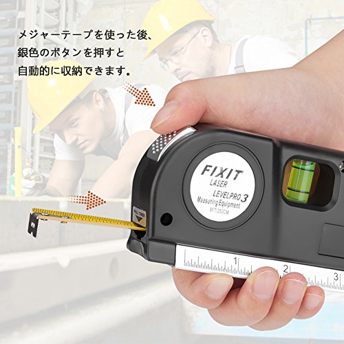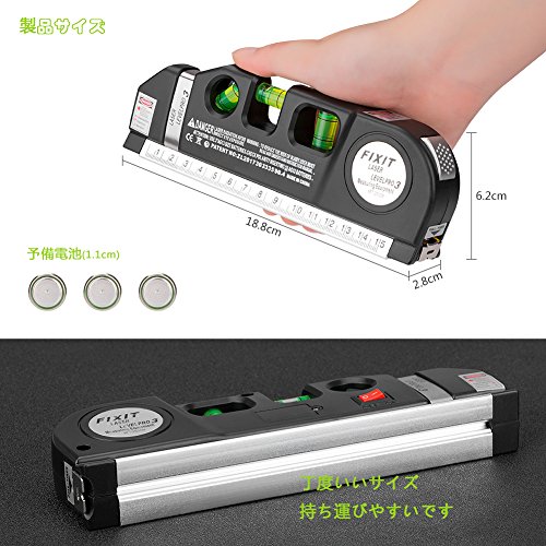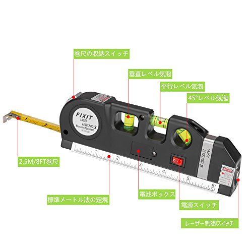- 【1台4役】このレベルレーザーはレーザーポインター、メジャーテープ、水準器、スケールという4つの機能を一気に揃い、様々な場所に適します。建築、配管、テレビの取り付ける、棚吊り、壁紙貼り等の作業に大きな役割を果たすことができます。
