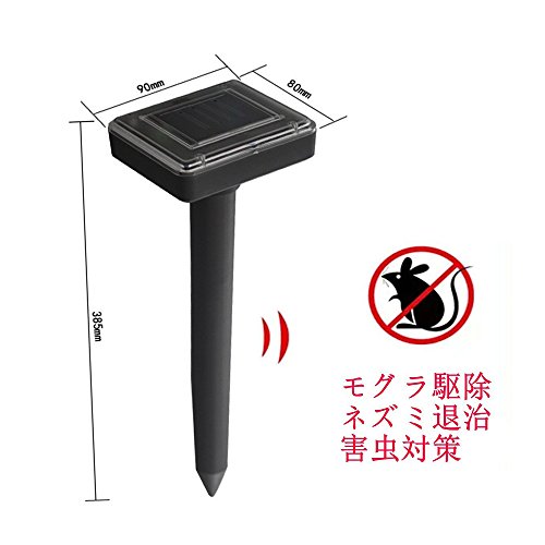 - 屋外害虫駆除器. 地面に挿すだけで、本体から特殊な音波が発生します。約25~30秒の間隔で土中に約3秒間モグラが嫌う音波振動を発生 .モグラは音に敏感ですので、この音を察知して移動します。