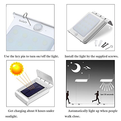 - センサー:光や人の動きが感知され、視野は120度まで。夜間に人の動きが感知されると自動的にオンに!