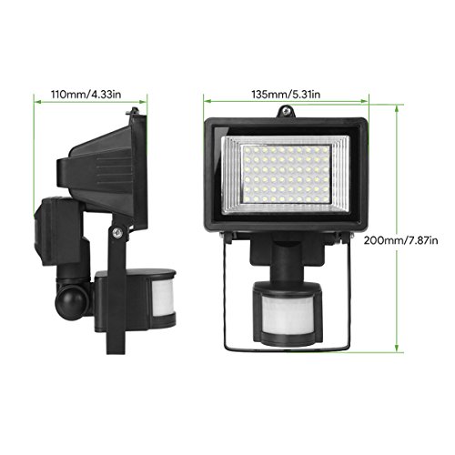 - 防水:防水性能はそれぞれIP65(ソーラーパネル+投光器)とIP44(モーション検出器)。