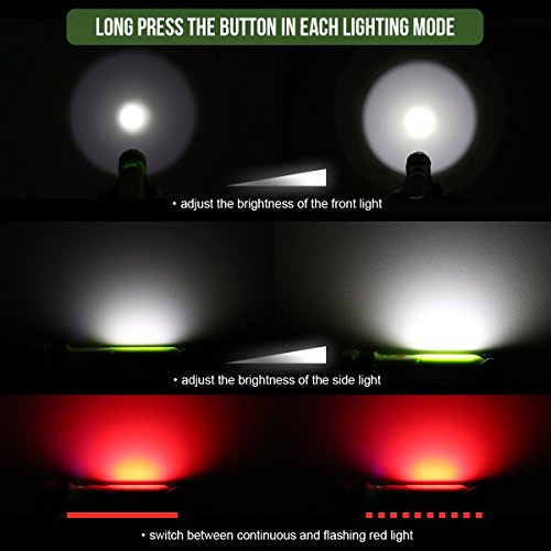 - 多種モード:昼光色モード;ヘッドライト&サイドライトモード(1%~100%調光)、赤光モード;連続&フラッシュモード。